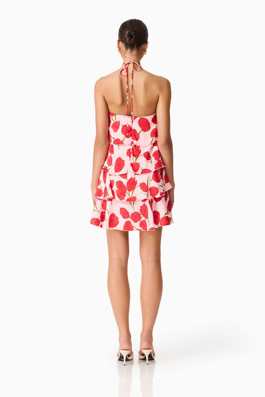A centre back invisible zipper offers a seamless finish, and the dress is fully lined for comfort and a flawless drape. Whether styled with heels for a formal look or sandals for a chic daytime outfit, the Melia Halter Mini Dress in Pink and Red Floral is an elegant wardrobe essential.