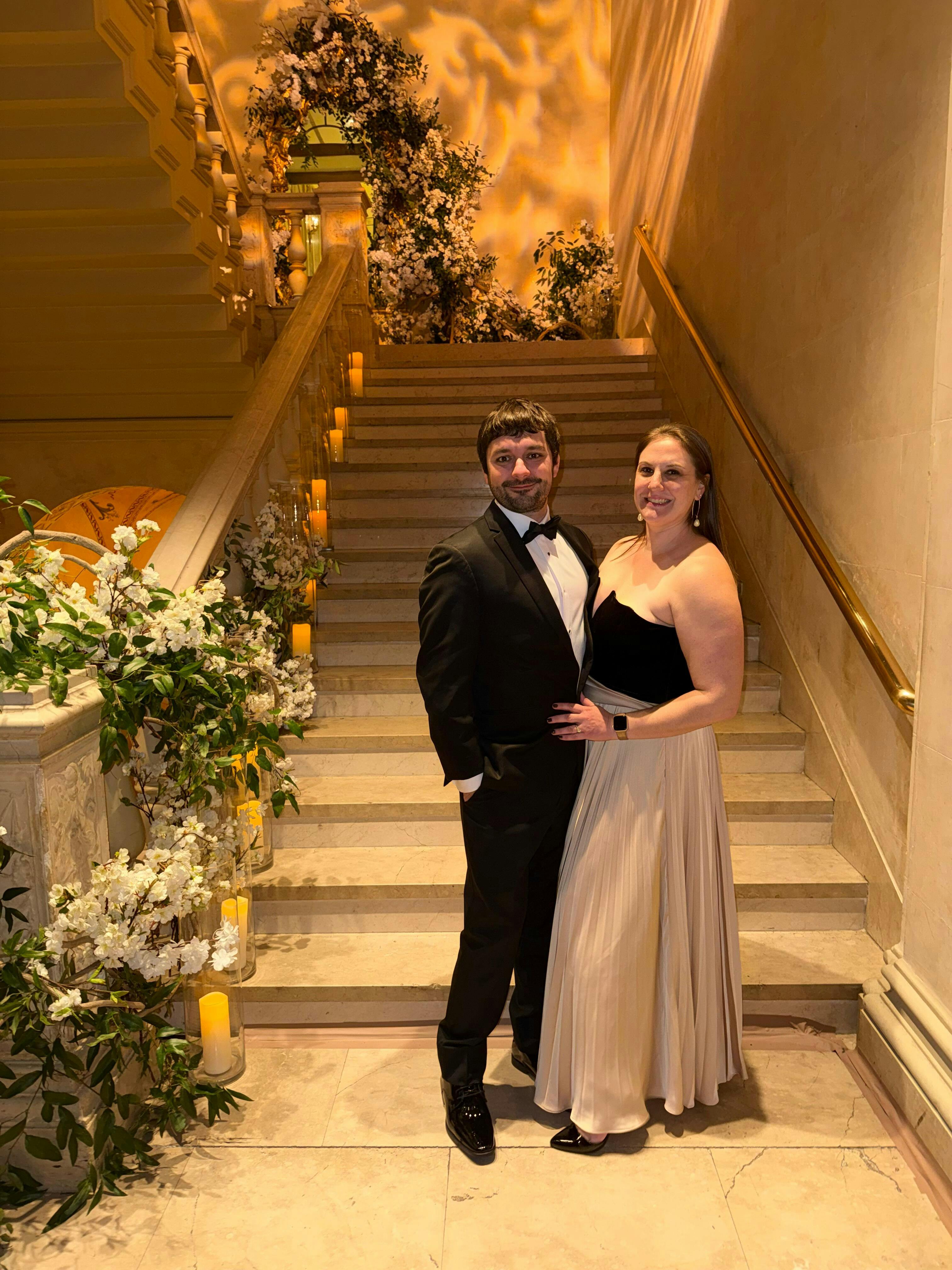 Deep V Neck Pleated Combo Gown in Velvet and Charmeuse