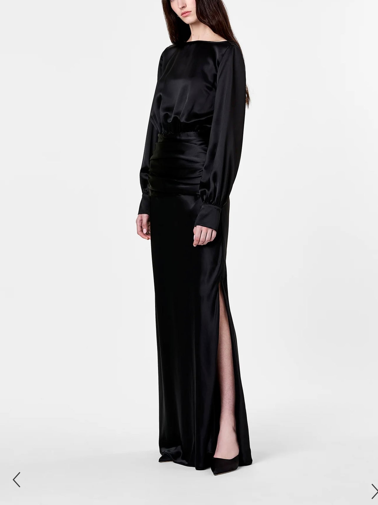 Long-sleeve gown in a luxurious satin fabric