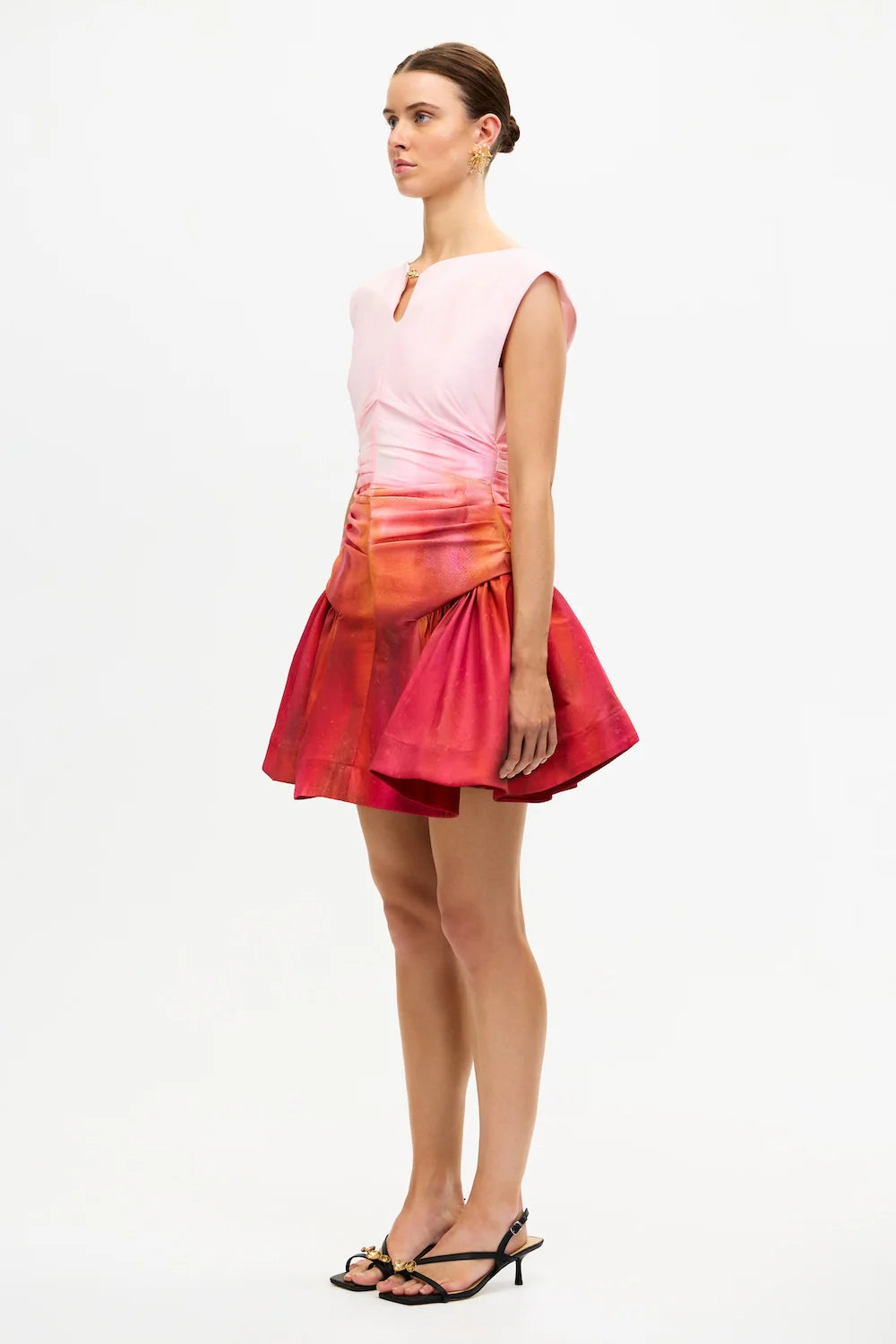 Embodying architectural artistry, the Bromton Mini Dress in Mimosa Sunrise commands attention with its sculpted silhouette and vivid placement print. Crafted from woven stretch dupion and fully lined for structure and comfort, this defined mini is accented by striking gold hardware at the centre front. Ideal for event dressing, it offers a refined balance of boldness and polish.